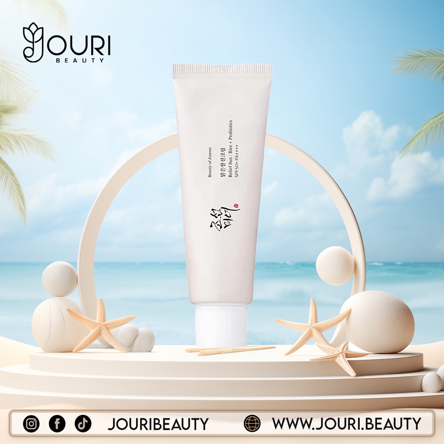 Relief Sun من Beauty of Joseon هو صن بلوك كوري خفيف بتركيبة الأرز والبروبيوتيك، بيوفر حماية قوية + ترطيب + تهدئة للبشرة من غير ما يسيب أي أثر أبيض