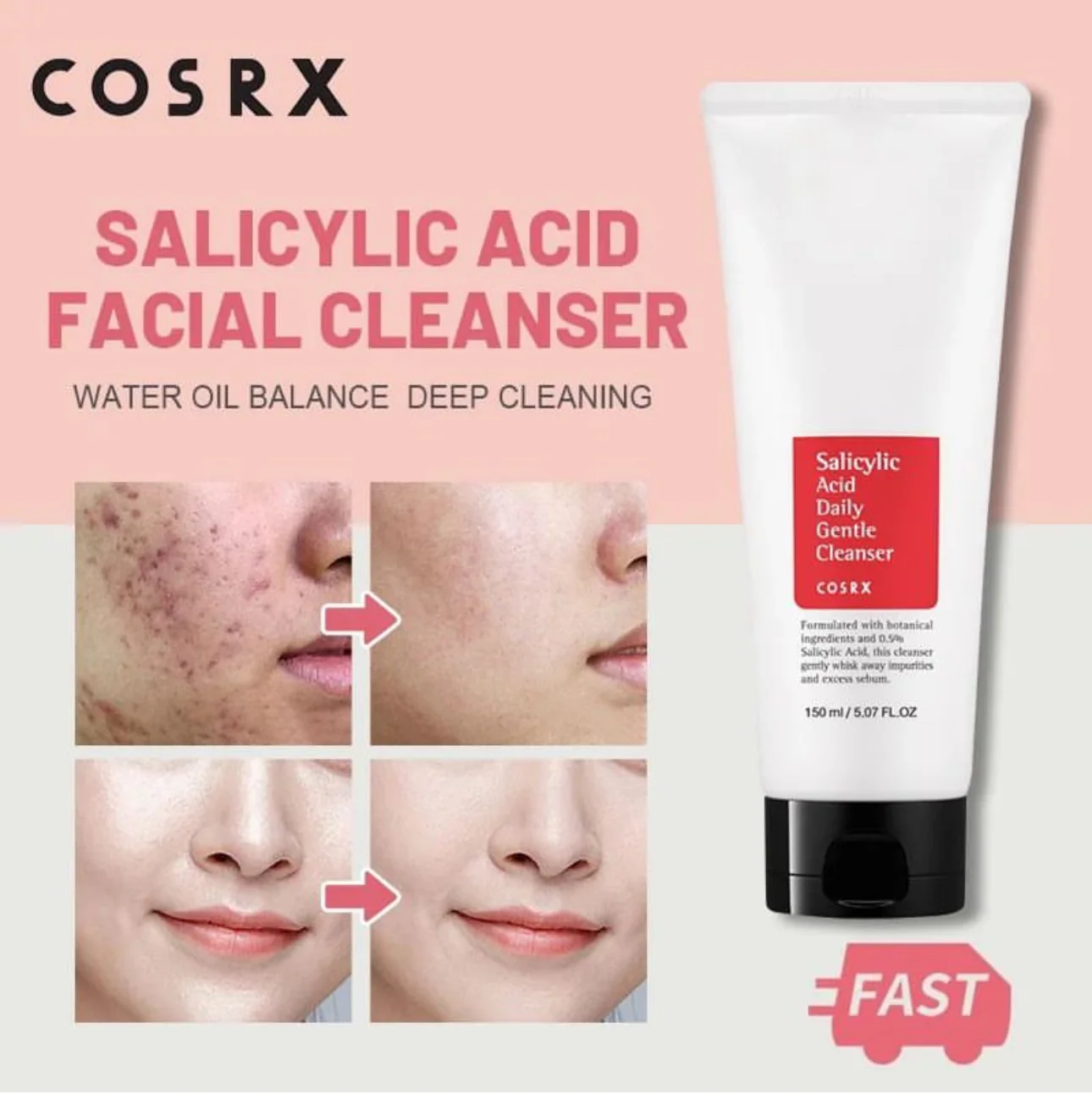 This COSRX Salicylic Acid Daily Gentle Cleanser is the perfect cleanser for acne prone skin. It is formulated with skin purifying botanical ingredients and salicylic acid that help remove dead skins and fight with acne, oil, blackheads and whiteheads, while providing moisture to the skin. It helps to reduce breakouts and leaves the skin soft and smooth.