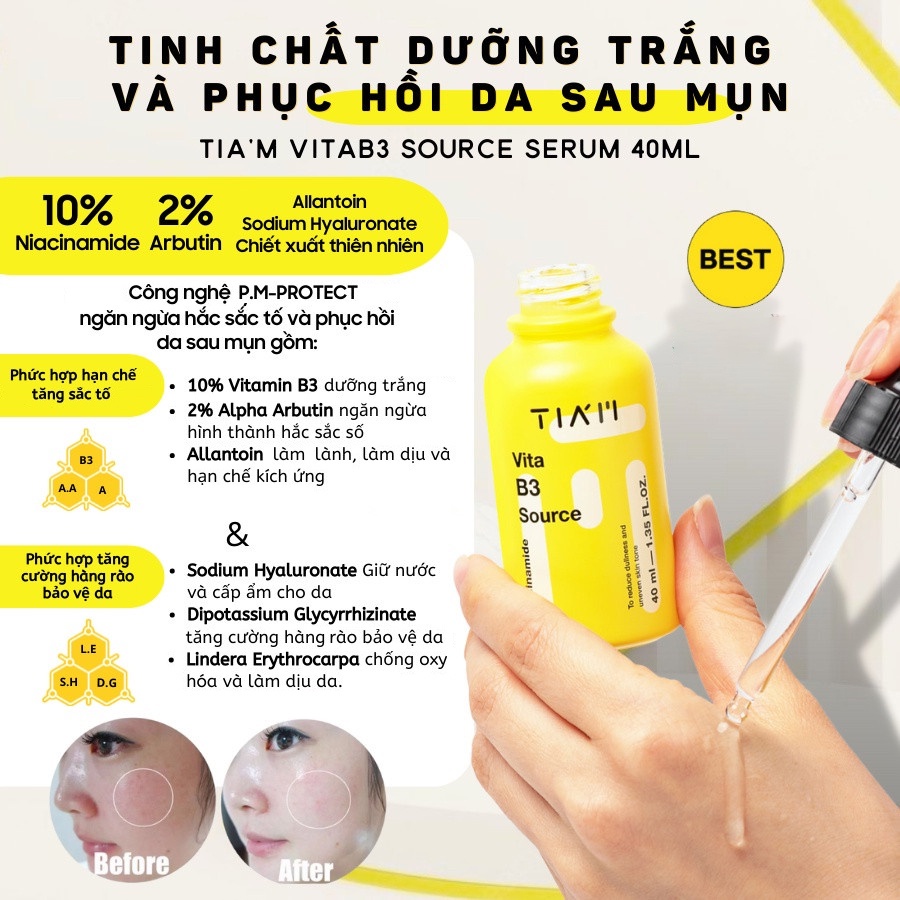 TIAM Vita B3 Source, 1.35 fl oz, 10% Niacinamide Glow Serum with 2% Arbutin for Radiant & Balanced Skin, Vegan Korean Skin Care