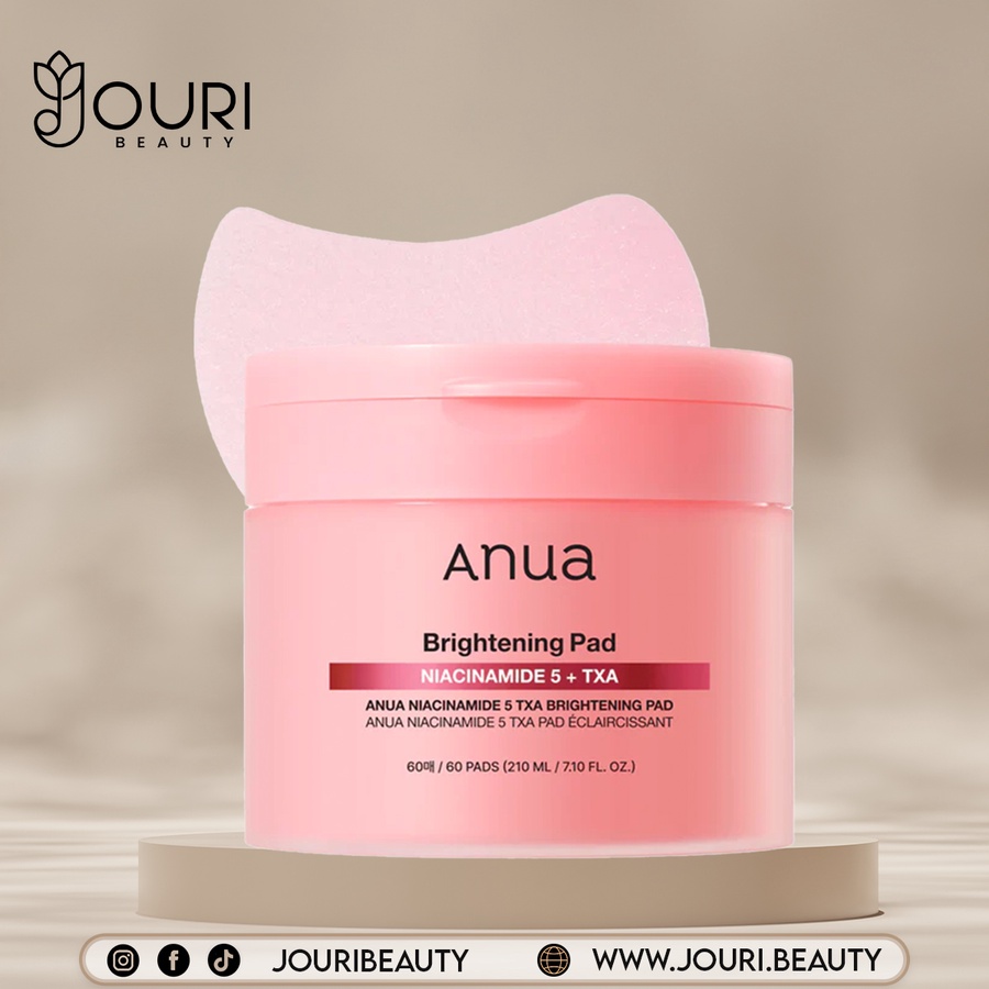Anua Niacinamide 5 TXA Brightening Pad is a round-shaped pad containing 5% Niacinamide and Tranexamic Acid to help brighten the appearance of skin