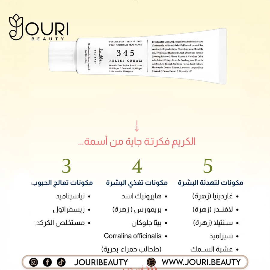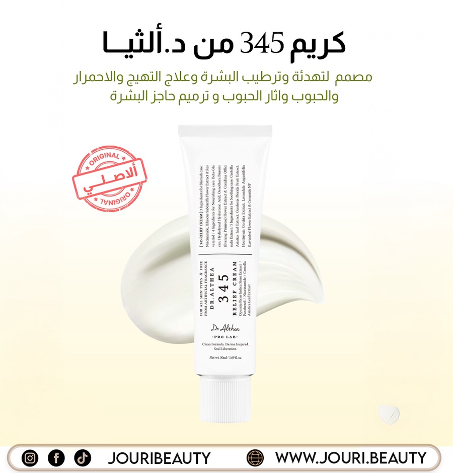 كريم د.الثيا 345 للترطيب العميق وتلطيف البشرة الحساسة. يحتوي على مكونات فعالة تعالج الجفاف والاحمرار بسرعة. منتج أصلـي من متجر Jouri Beauty - اطلبيه الآن!