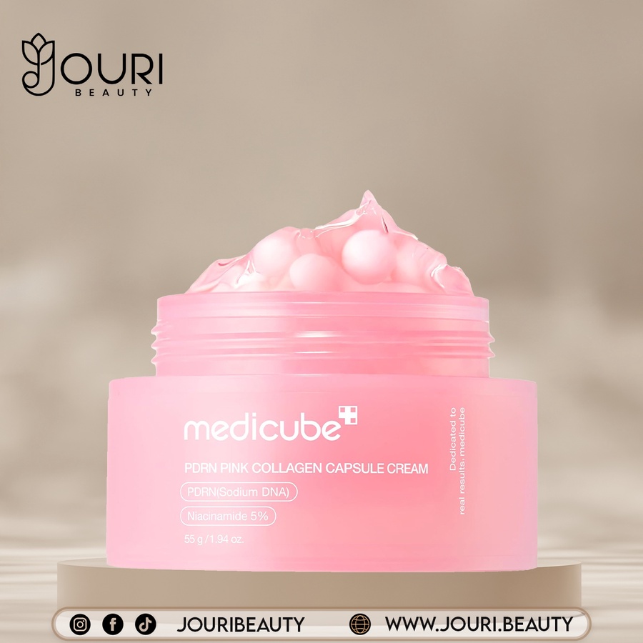 Medicube PDRN Pink Collagen Capsule Cream كريم بكبسولات مركزة بتنفجر على البشرة وقت الاستخدام علشان تديكي جرعة تجديد وامتلاء فوري. بيجمع بين الـ PDRN والكولاجين لدعم مرونة البشرة، تقليل مظهر الخطوط، واستعادة الجلو الوردي الصحي بقوام غني من غير إحساس تقيل.