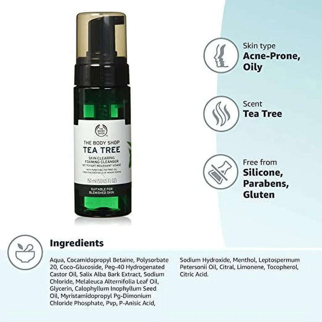 غسول تي تري الرغوي- تنظيف عميق لمكافحة حب الشباب! يحتوي على خلاصة شجرة الشاي لتهدئة البشرة الدهنية والمعرضة للبثور. خالٍ من المواد القاسية - اطلبيه الآن!
